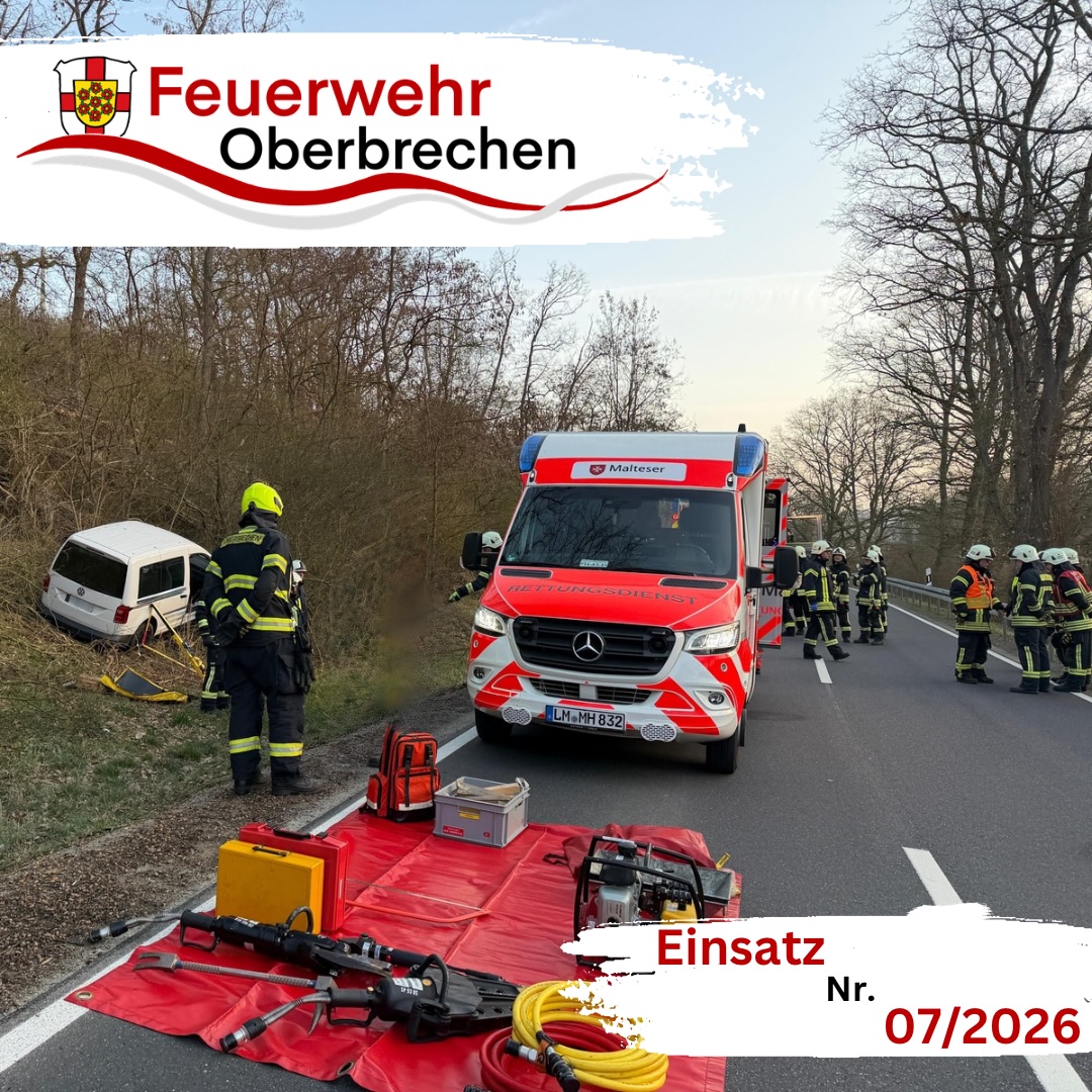 Am Sonntagmorgen, den 08.03.2026, wurden die Feuerwehren der Gemeinde Brechen um 07:09 Uhr zu einem Verkehrsunfall mit gemeldeter eingeklemmter Person auf die L3021 zwischen Oberbrechen und Weyer alarmiert.