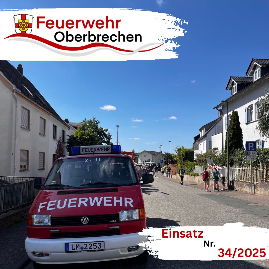 Am 17. August 2025 ĂŒbernahm die Freiwillige Feuerwehr Oberbrechen um 14:30 Uhr die verkehrstechnische Absicherung des Kirmesumzugs in Oberbrechen.